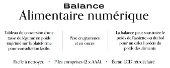 Nous savons que peser les aliments est la clé de tout programme de perte de poids, et une balance alimentaire est un incontournable de la cuisine pour que votre régime réussisse. Avec cette nouvelle balance alimentaire numérique, ils obtiendront des poids précis qui peuvent facilement être basculés entre les poids et volumes impériaux et métriques. Le poids de l’assiette ou du bol peut également être retiré pour obtenir uniquement les mesures des aliments.