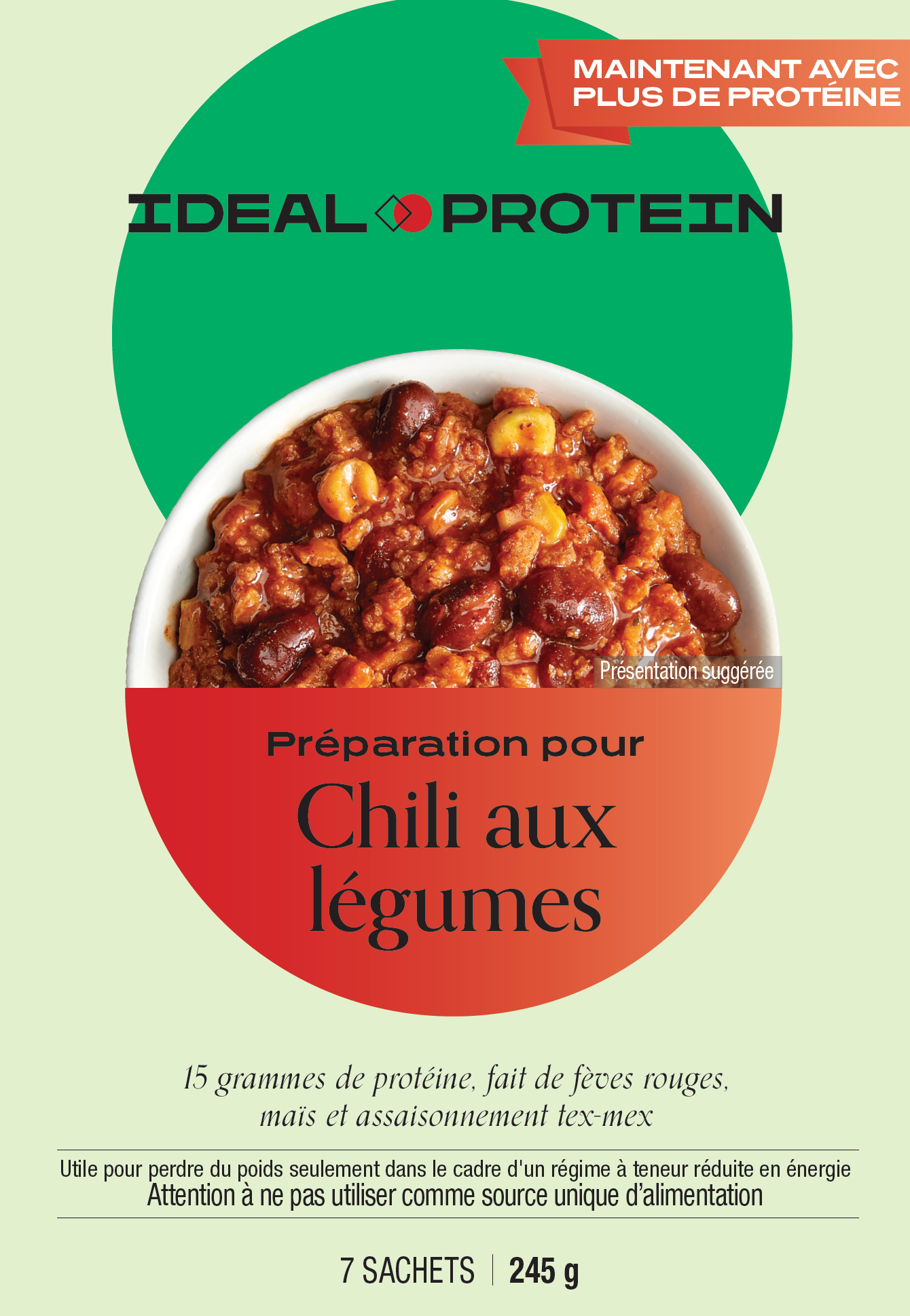 Rien n’est plus satisfaisant que la version Ideal Protein de ce chili classique américain garni d’haricots, de légumes et d’épices raffinées. Prêt en quelques minutes, sur le poêle ou dans le micro-ondes, notre préparation de chili aux légumes est un favori de longue date.