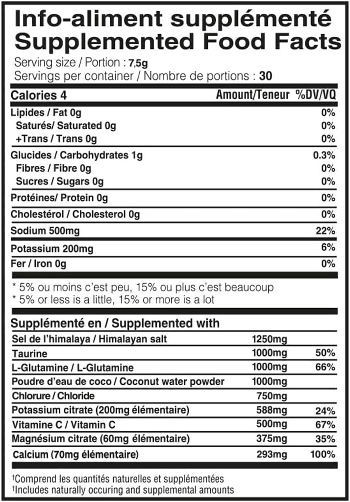 Mélange d’électrolytes amélioré : Hydra+ Electrolytes est fabriqué avec des ingrédients de qualité supérieure, comprenant du sel de l’Himalaya, de l’eau de noix de coco, de la vitamine C, du citrate de magnésium et du citrate de potassium. Ce supplément d’électrolyte garantit une hydratation instantanée et durable sur une période prolongée.