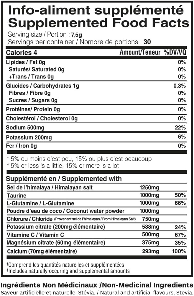 Mélange d’électrolytes amélioré : Hydra+ Electrolytes est fabriqué avec des ingrédients de qualité supérieure, comprenant du sel de l’Himalaya, de l’eau de noix de coco, de la vitamine C, du citrate de magnésium et du citrate de potassium. Ce supplément d’électrolyte garantit une hydratation instantanée et durable sur une période prolongée.