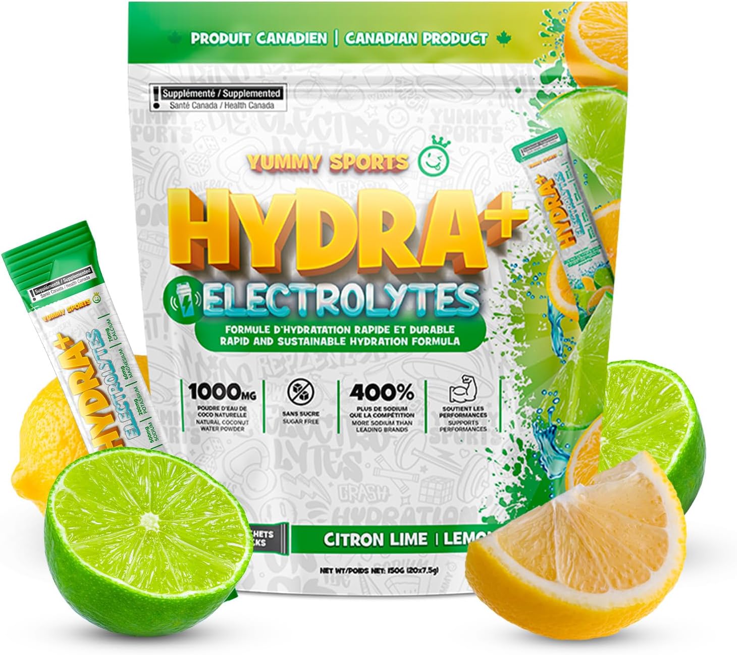 Électrolytes Hydra + Citron lime (sac de 20 sachets)