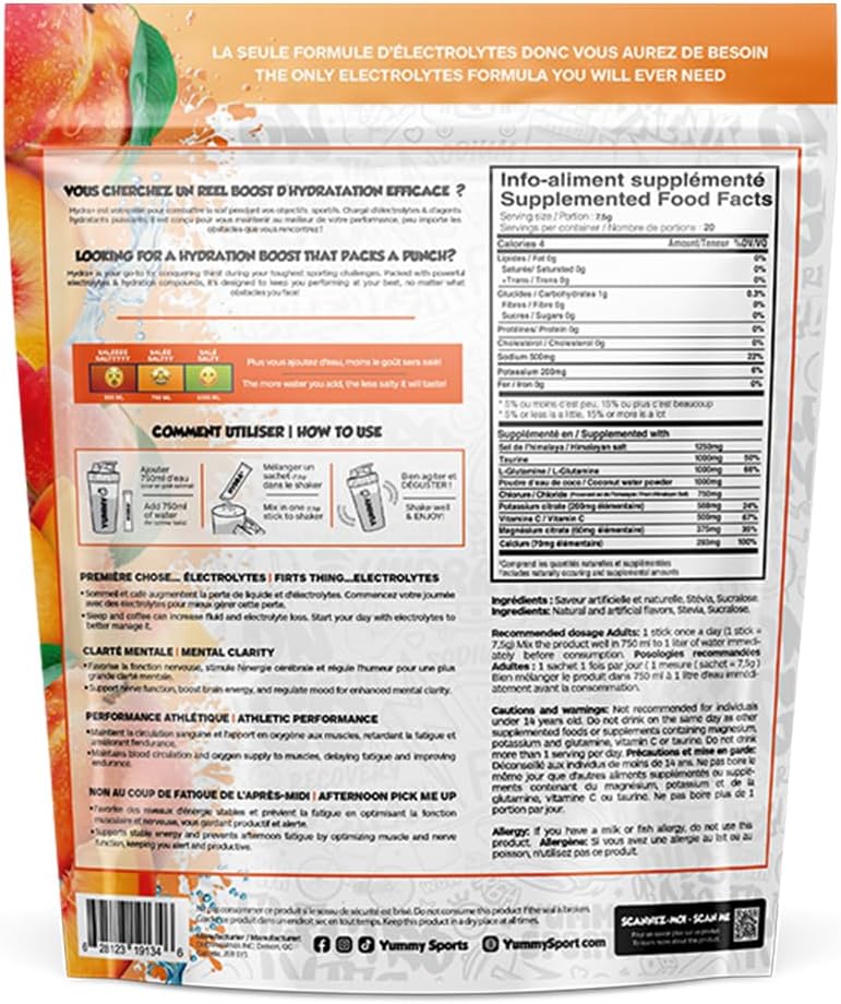 Électrolytes Hydra + Pêche (sac de 20 sachets)